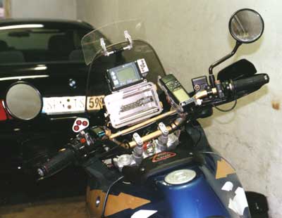 Nach Anschluß aller Kabel an den IMO und dem Roadbook habe ich die beiden fest montiert. Eigentlich hiess es in der Beschreibung, das die Gummipuffer der Tripmasterbefestigung abgemacht werden sollen, ich habe sie aber aus Daempfungsgruenden gelassen und es hat sich auch bisher bewaehrt.