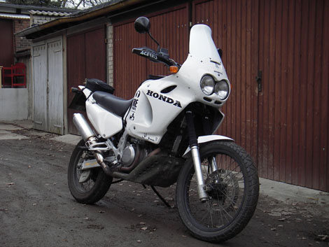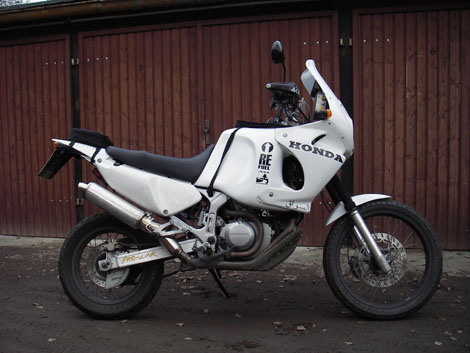 Die gute alte RD07 hatte nun schon ca. 80.000 km runter und langsam wurde es Zeit, die grossen und kleinen Dinge, die in dieser Zeit kaputtgegangen sind, in Ordnung zu bringen. Dazu habe ich die Maschine komplett gestrippt und alles kontrolliert. Die Radlager wurden prophylaktisch komplett ausgetauscht, das Lenkkopflager wurde ebenso ersetzt, das hatte schon einen merklichen »Mittenruck«. Die Felgen sahen nach etlichen Winterfahrten auch nicht mehr sooo gut aus und so wurde recht schnell der Entschluss gefasst, die Felgen kunststoffbeschichten zu lassen. Nach dem Ausspeichen stellte ich mit grossem Erstaunen und auch Freude fest, das keine einzige Speiche kaputt war und das nach 80.000 km und viel Offroad und Afrika. Schwarze Felgen stehen der Maschine uebrigends ausgesprochen gut.