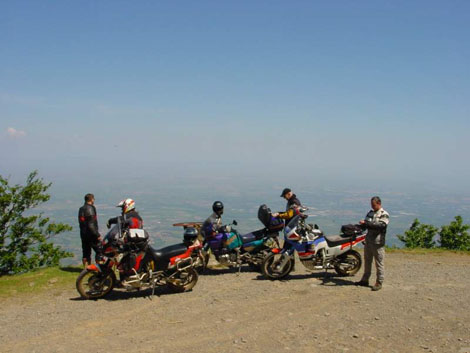 Andi, Tina, Frank und Rainer, hinten der Blick auf Argeles ...