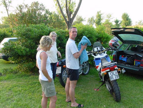 die erste Tour nach Spanien nach einigen Stunden im Zelt wegen Regen nun erste Wetterbesserungen, es schmeckt und die Laune ist super