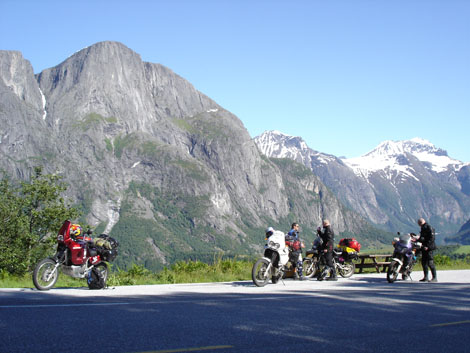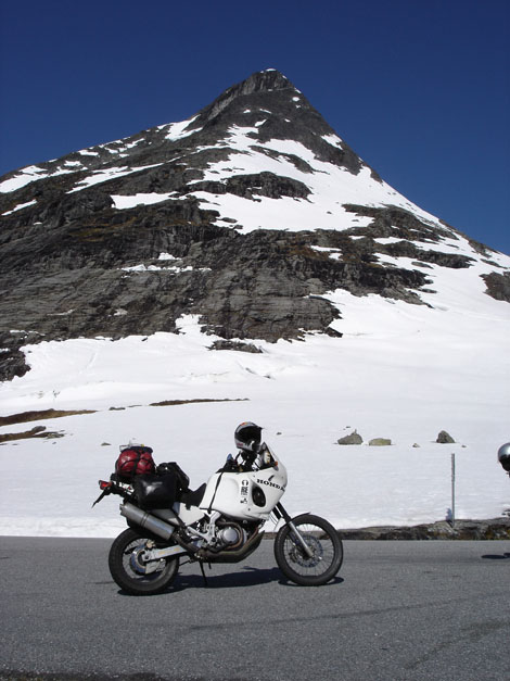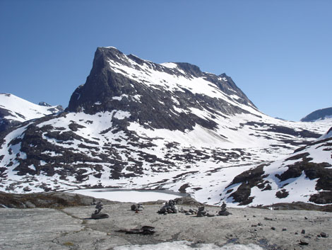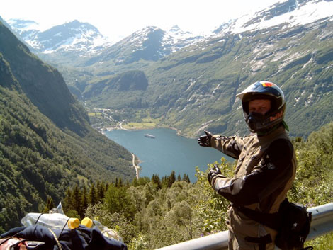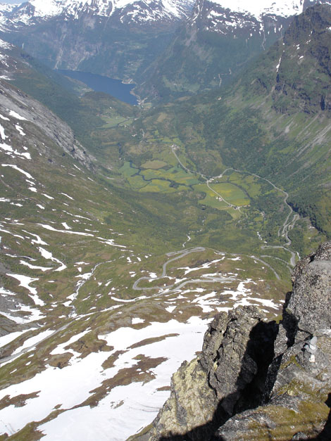 der Blick vom Dalsnibba: unten sieht man den Geiranger Fjod und die schoen kurvige Strasse