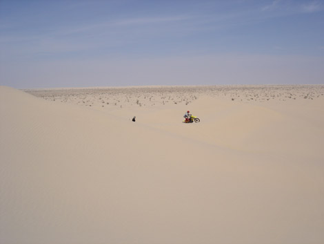 der Durchstieg des Dueneguertels, dort hinten bemuehen sich Paul und Spati ...