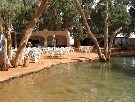 der Pool in Ksar Ghilane mit jeder Menge "Click'N'Go-Touris"