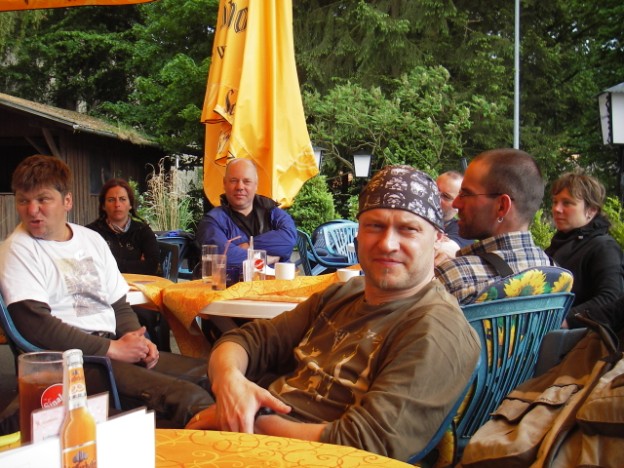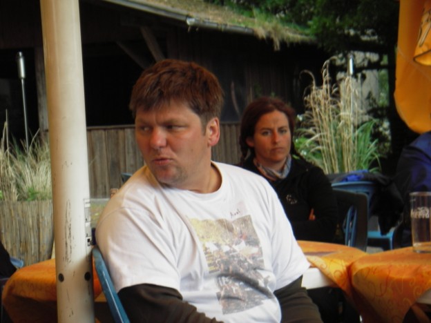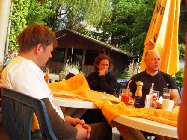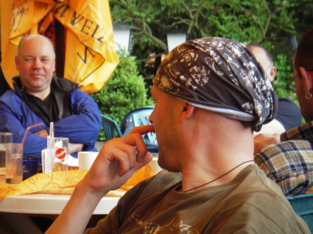 Chris musste mit einem Pingpong Ball die Namen von Motorraedern sagen, die wir dann erraten mussten