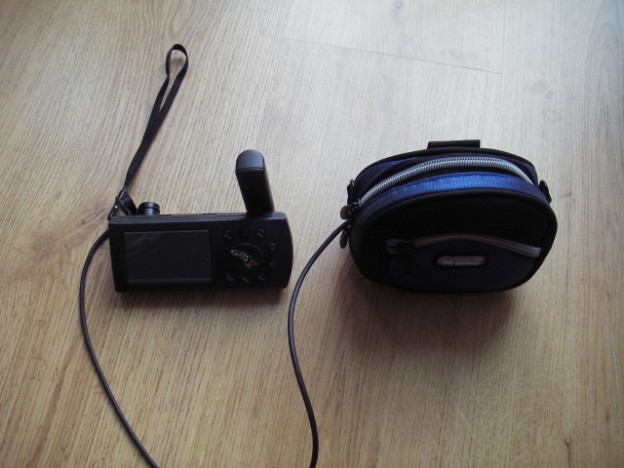 so sieht die fertige Loesung aus, die Tasche wird an die Lenkerstrebe geklipst und das GPS mit einer Halterung auf der Lenkerstrebe befestigt, zur Sicherung ziehe ich noch immer das Halteband mit einer Schlaufe um die Lenkerstrebe