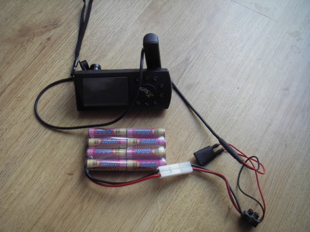 hier das Innenleben, die 8 Akkus (1800 mAh) liefern genug Power fuer ca. 8-10 Stunden, mit voll aufgeladenen Akkus zeigt das Servicemenue vom Garmin sogar 10,95V an