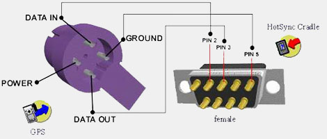| PDA In der Version 2 von Falkman Online gab es noch eine Sektion PALM. ich habe lange ueberlegt, was ich damit nun in der aktuellen Version 3 machen soll. Ich nutze keinen der alten dort beschriebenen Geraete mehr, sondern habe nunmehr einen Palm Zire 71 neben verschiedenen MS-basierten PDAs (HP, Yakumo, T-Mobile SDA). Nach Durchsicht der Seiten habe ich dann letztendlich entschieden, das ich nur noch das Anschlussschema eines Palms mit einem GPS anbiete, der Rest ist ueberholte Information und damit obsolet. Nach wie vor wird von Motorradreisenden gern ein Palm als Datenspeicher fuer Tracks und Routen des GPS-Geraets benutzt. Um ein GPS mit einem Palm seriell zu verbinden, benoetigt man ein Kabel, was man natuerlich kaeuflich erwerben oder eben auch selbst bauen kann: Es gibt 2 Moeglichkeiten, sich ein Kabel zu bauen. Die elegantere und auch preiswertere Methode ist das Selber bauen. Man besorgt sich den GPS-Stecker (auch Phranc genannt) bei einem darauf spezialisierten Internetversender und dazu einen weiblichen seriellen Stecker. Man loetet das so zusammen, wie das im obigen Bild dargestellt ist und fertig. Die zweite Moeglichkeit geht folgendermassen: Zum Lieferumfang des GPS gehoert das PC-Datenkabel und i.d.R. hat der engagierte Palmbenutzer ja auch ein serielles Hotsync-Kabel (oder er nimmt eben das Cradle, aber das ist fuer Reisen recht sperrig). Damit und mit einem doppelten Genderchanger kann man nun diese beiden Kabel verbinden und erhaelt eine Verbindung zwischen dem GPS und dem Palm. Ich hatte eine Zeitlang eine experimentelle Verbindung über 3 aufgebogene, mit Plastik isolierte Heftklammern bewerkstelligt, bis sich mal ein guter Freund von mir erbarmte und mir einen Adapter zusammenloetete, den ich zwischen Hotsynckabel und GPS-Datenkabel stecken konnte. |